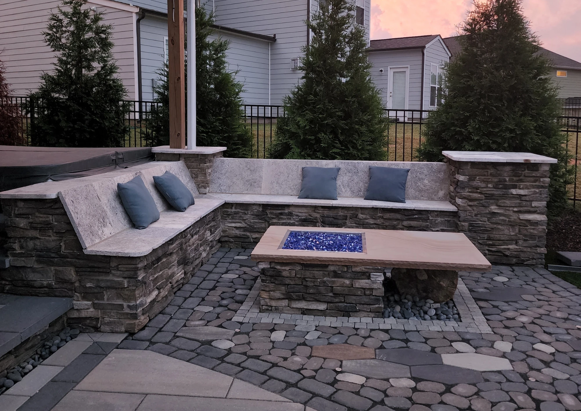 Our expertise shines in integrating your wall perfectly with new or existing patios, fire pits, and walkways, creating a cohesive, unified outdoor living area.